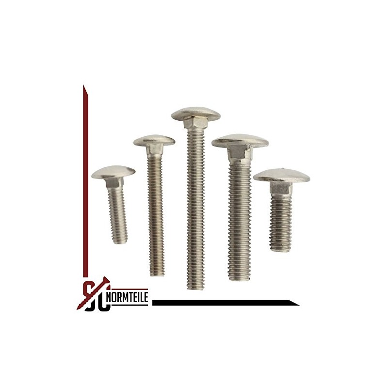 • ✔The round-head screws are also called carriage bolts or gate hinge screws. The screw head is very flat dimensioned and resembles a rounded semi-circular profile. Compared to standard screws, the round head screws have no drive. Thus, external influence on the screw can be prevented, so that unauthorised loosening of the screw is not possible.