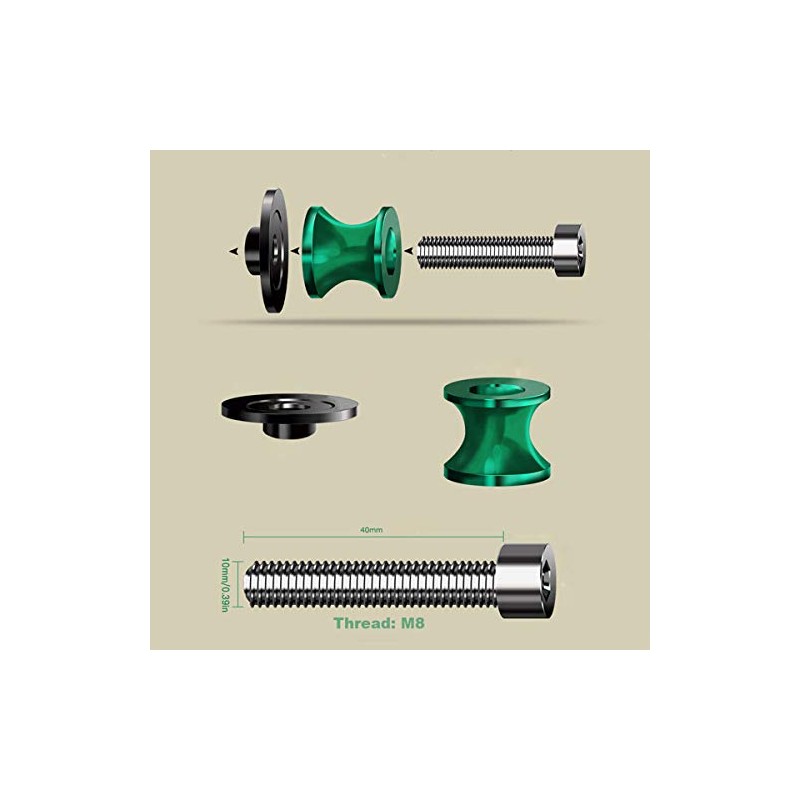 - The swing arm spool screw which is used with the swing arm can easily make the motorbike up and down, to avoid to damage the body of your motorbike while you stop it or repair it Our swing arm spool has a black spacer which is used for Increasing the force area, thus to reduce the damage to the motorcycle body