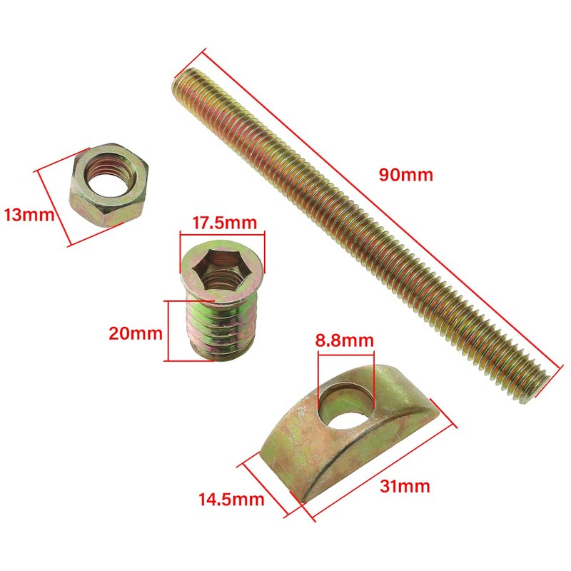 M8x90mm Panel Furniture Wardrobe FMHXG 4Set 4 in 1 Metal Furniture Connecting Fittings with Semilunar Connector M8 Half-Moon Nut, Table Bed Assembly Fasteners Bolts Nuts Threads Half Moon Spacers