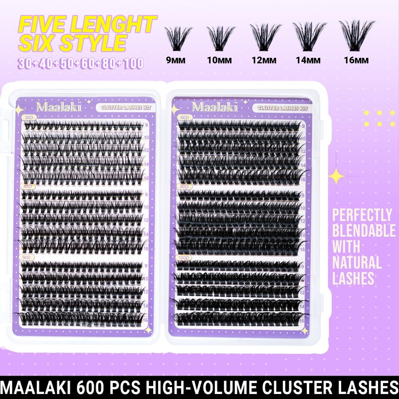 - 🎀HIGH-VOLUME EYE-CATCHING INDIVIDUAL EYELASHES: Achieve salon-quality eyelashes cluster effortlessly! Our upgraded cluster Lashes has 600 Pcs, featuring six styles: 30D+40D+50D+60D+70D+80D+100D, five lengths 9-16mm. Perfect for different eye makeup styles, e.g. everyday looks, cat-eye, Russian volume lashes – all made possible with this set!