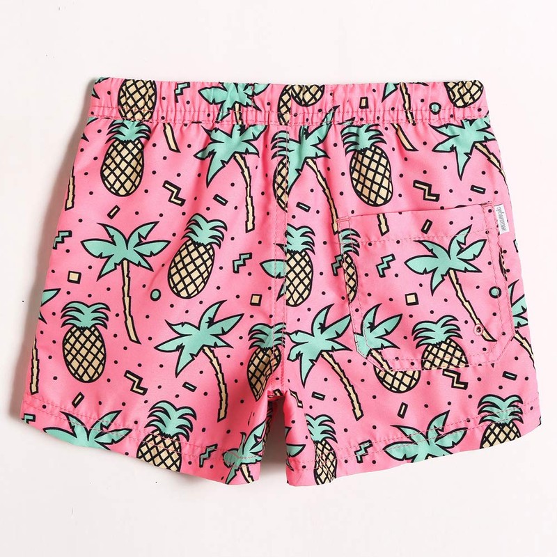 - Our brand "MaaMgic" is always focus on providing the most fashionable and comfortable swimming trunks to our coutomers. For the boys, we have cute fish bone siwm trunks, short pineapple swim trunks, flamingo swim trunks, dinosaur swim trunks etc. These swim trunks could be a ideal gift to your boys, sons or grandsons.