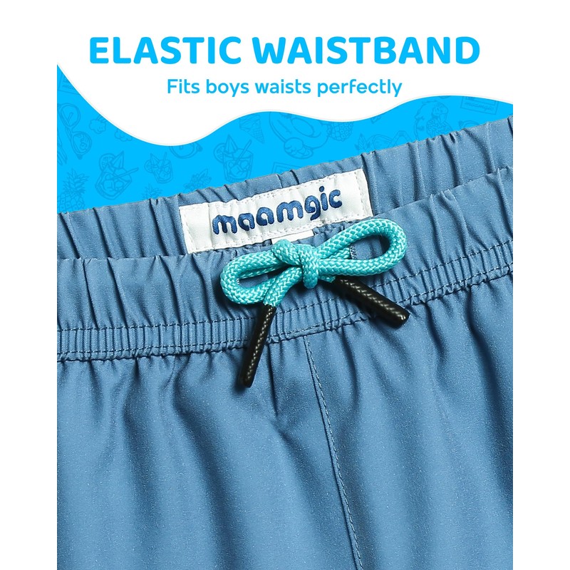 maamgic Boys Swim Trunks with Compression Liner 4-Way Stretch Quick Dry Swim Shorts Swimming Trunks Toddler Boy Haze Blue White 8 Years