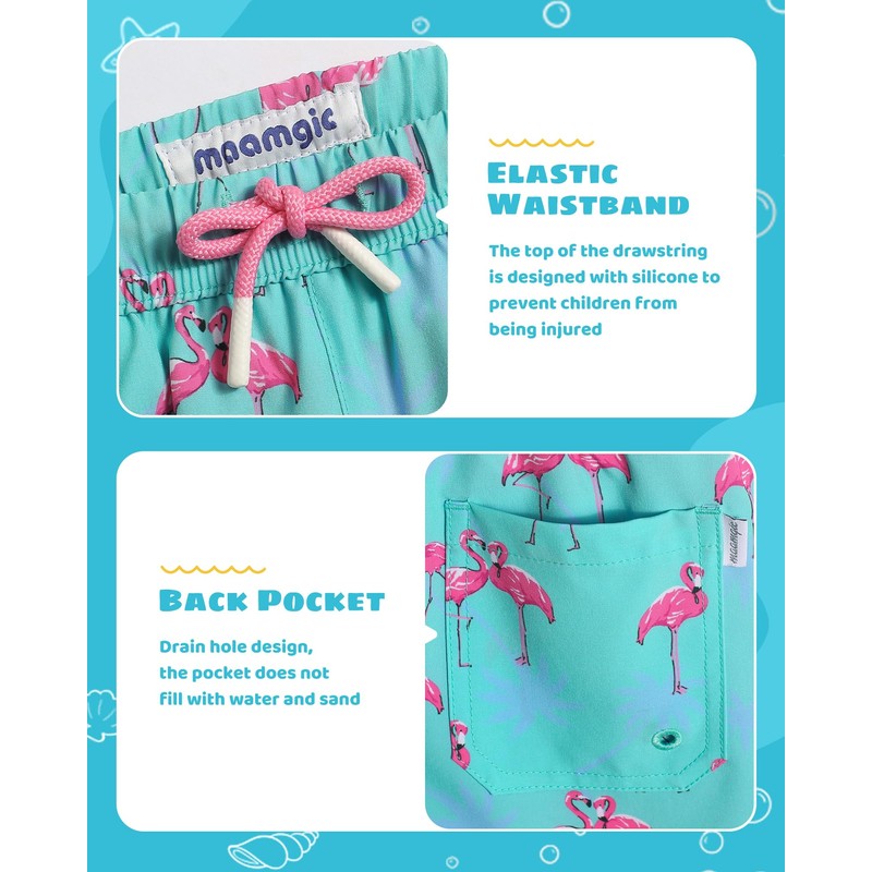 MaaMgic Boys Swim Trunks with Compression Liner Toddler Stretch Quick Dry Swim Shorts Quick Dry 2 in 1 Beach Shorts,Flamingos Blue,Medium(10/12)