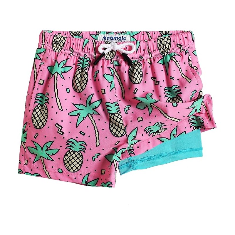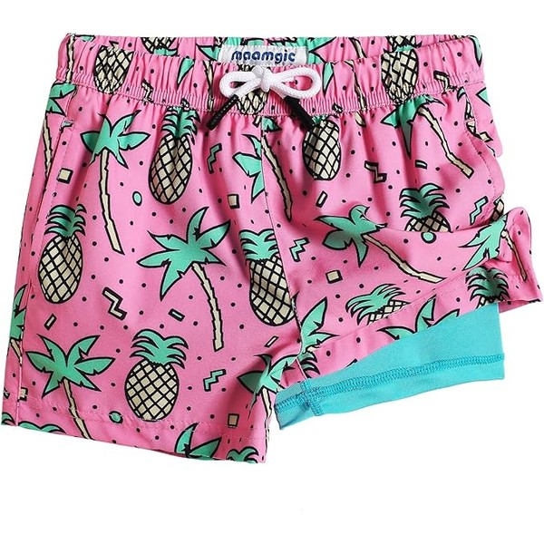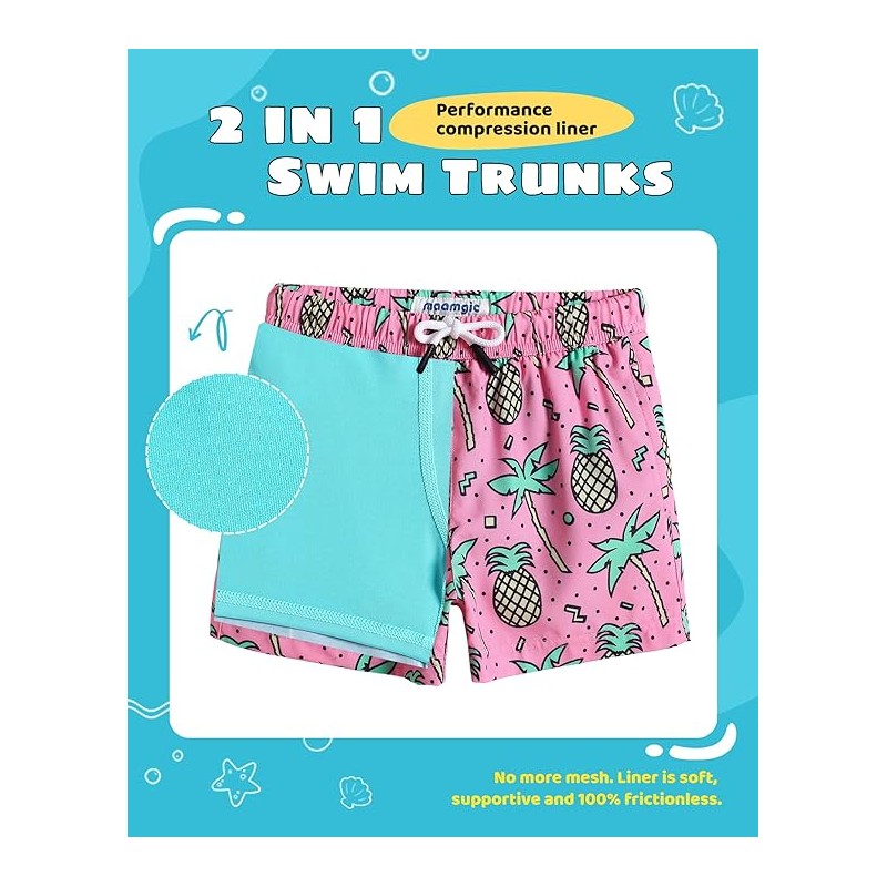 maamgic Boys Swim Trunks with Compression Liner Toddler Stretch Swim Shorts