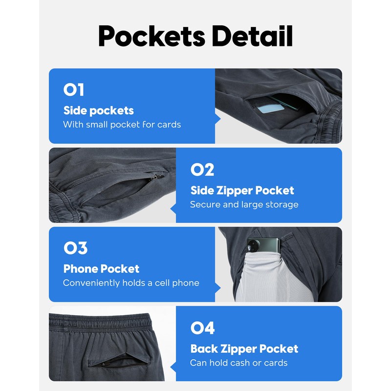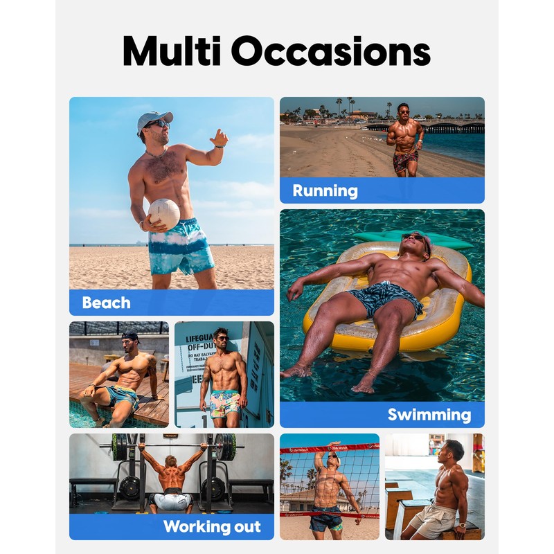 - 【PRACTICAL POCKETS】This swimming shorts have two front side pockets, one of which has a smaller inside pocket for earbuds, cards, keys, etc. One deep zippered side pocket, one zippered back pocket and one lined pocket keep all your belongings safe. Yes, we have six pockets.