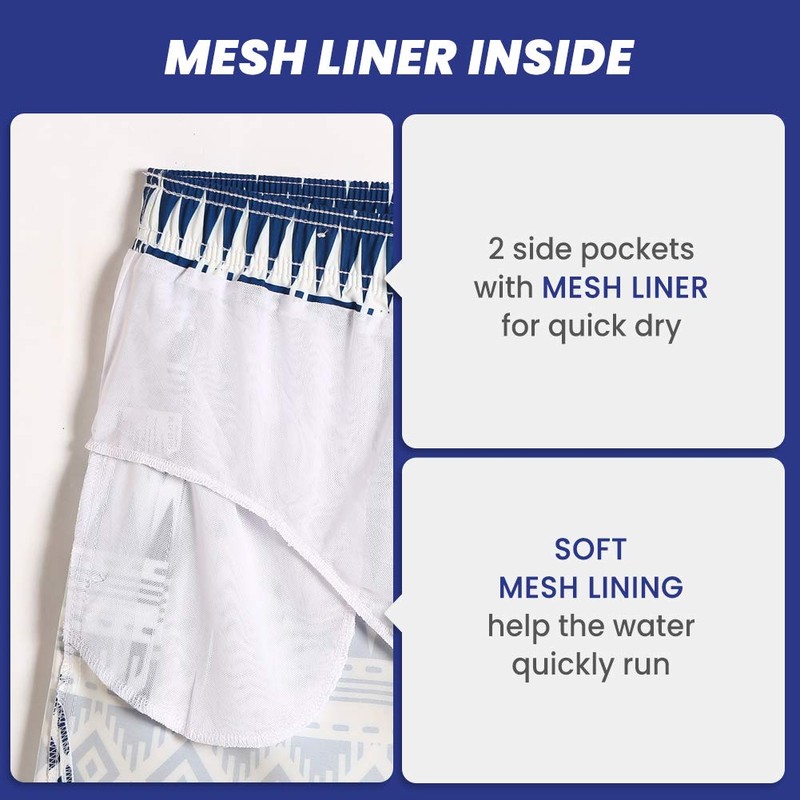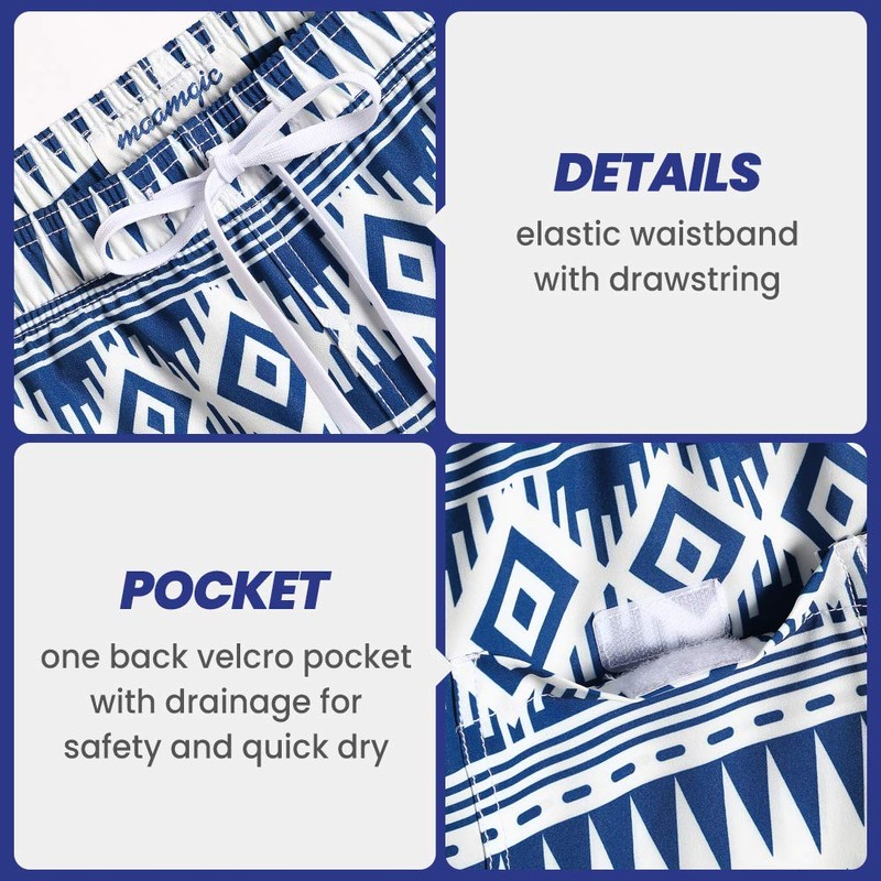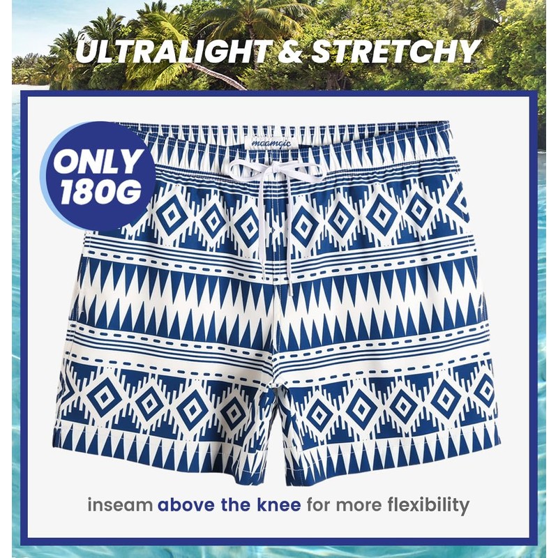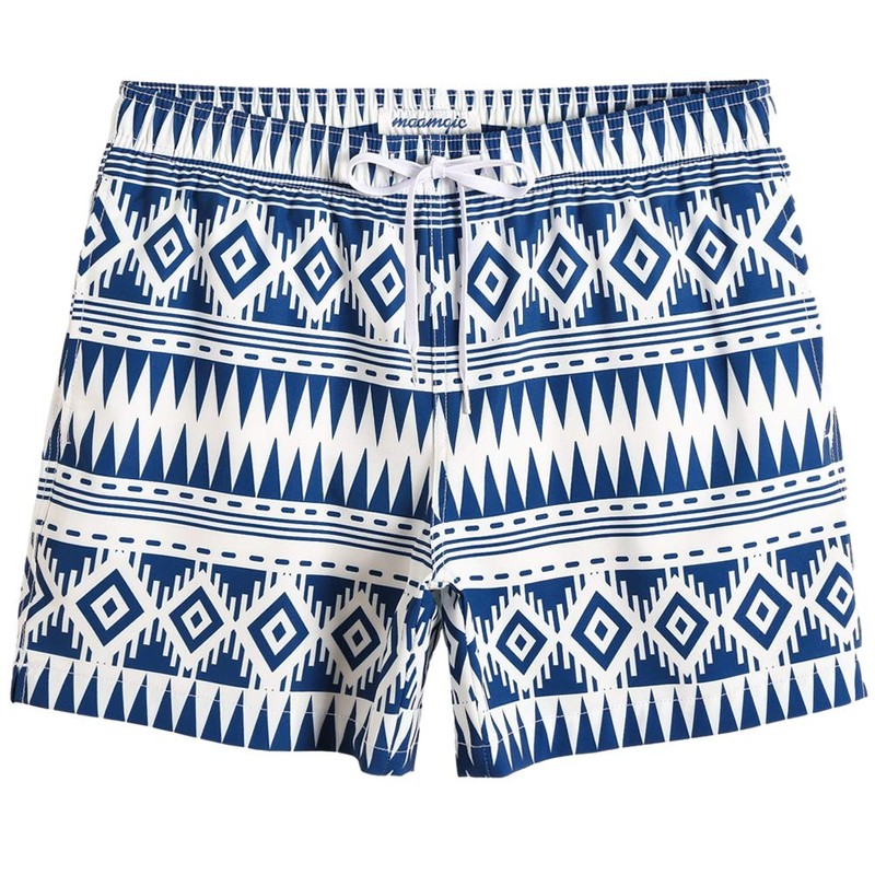 MaaMgic Mens 5 inch Swim Trunks 4 Way Stretch with Mesh Lining Quick Dry Bathing Suits Swimwear,Ethnic Blue,Large