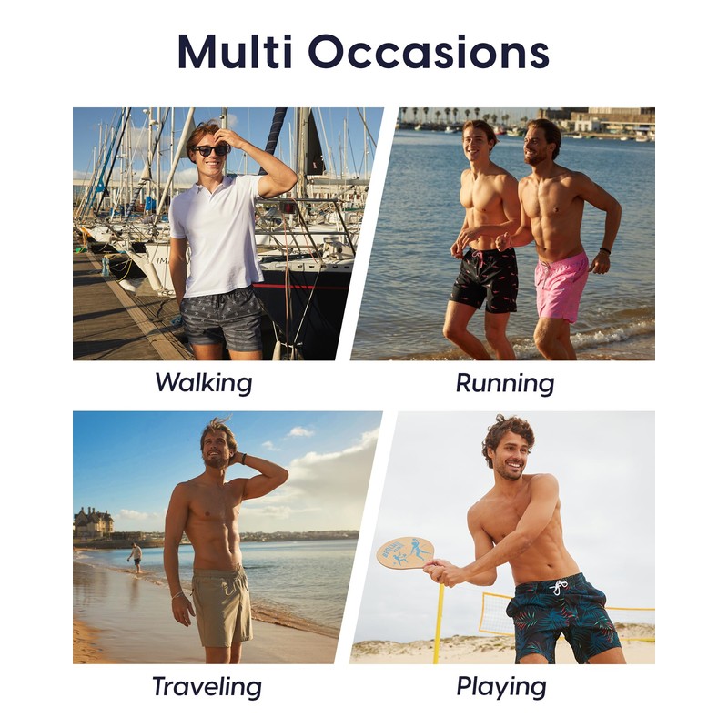 - Adjustable Waistband & Superior Fit: These bathing suits are designed with an elastic waistband and adjustable drawstring for a customized fit, ensuring they stay securely in place during any activity. Side slits enhance freedom of movement, while the anti-slip design keeps your swimming trunks for men secure, even in wet conditions. Whether it's for casual strolls, beach sports, or gym workouts, the fit provides unmatched comfort