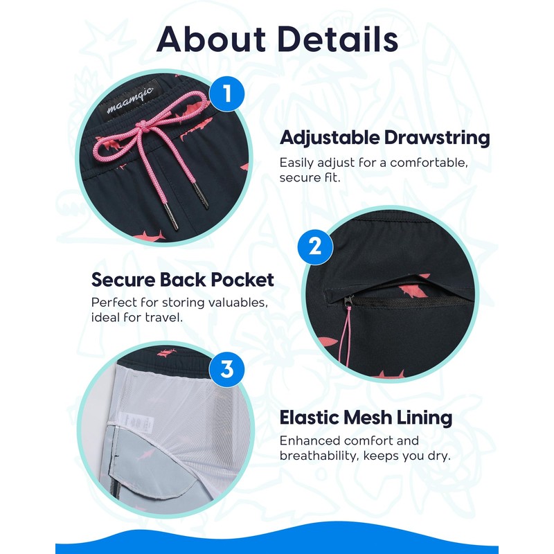 - Wide Range of Sizes & Lengths: The 9-inch inseam design ensures coverage above the knee, offering additional privacy while maintaining style. These maamgic swim trunks for men meet U.S. men's standard sizing, available in XS to 2XL, combining comfort and style in a perfect mens swimsuit