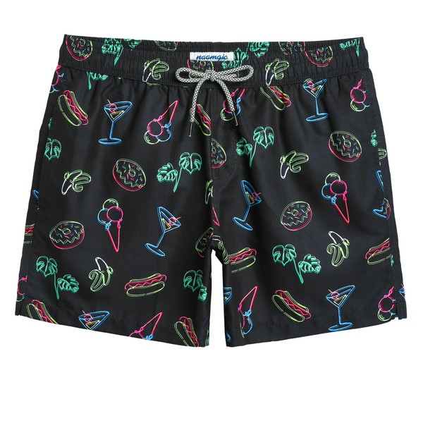 maamgic Mens Swim Trunks 5" Quick Dry Beach Shorts Bathing Suits with Mesh Lining Pockets Black Fruit Drink Medium