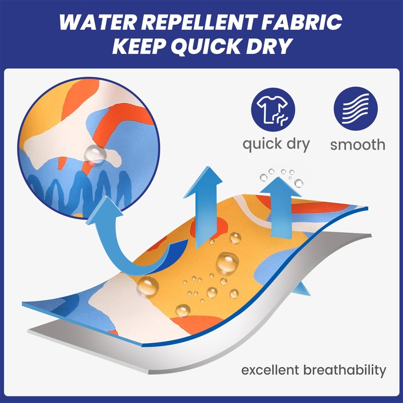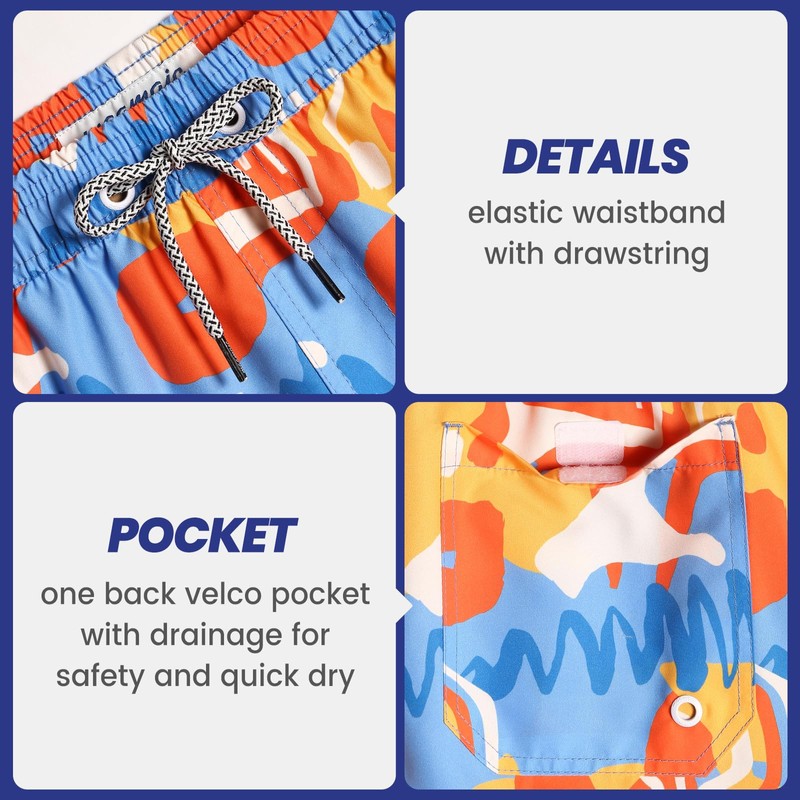 - Quick-Drying Swim Trunks - 100% polyester; made of quick-drying fabric that is lightweight, comfortable and extremely water-repellent (not waterproof). High quality printed men's swim trunks that will never fade or peel. Soft mesh lining allows for maximum breathability so the shorts don't swell underwater. You'll be completely dry within minutes of getting out of the pool or surfing.