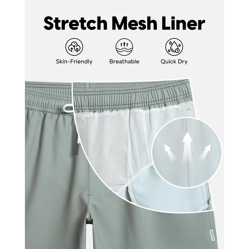 maamgic Mens Swim Trunks 5" Quick Dry Beach Shorts Stretch Swimming Trunks Shorts with Mesh Lining Zip Pockets Light Grey Large