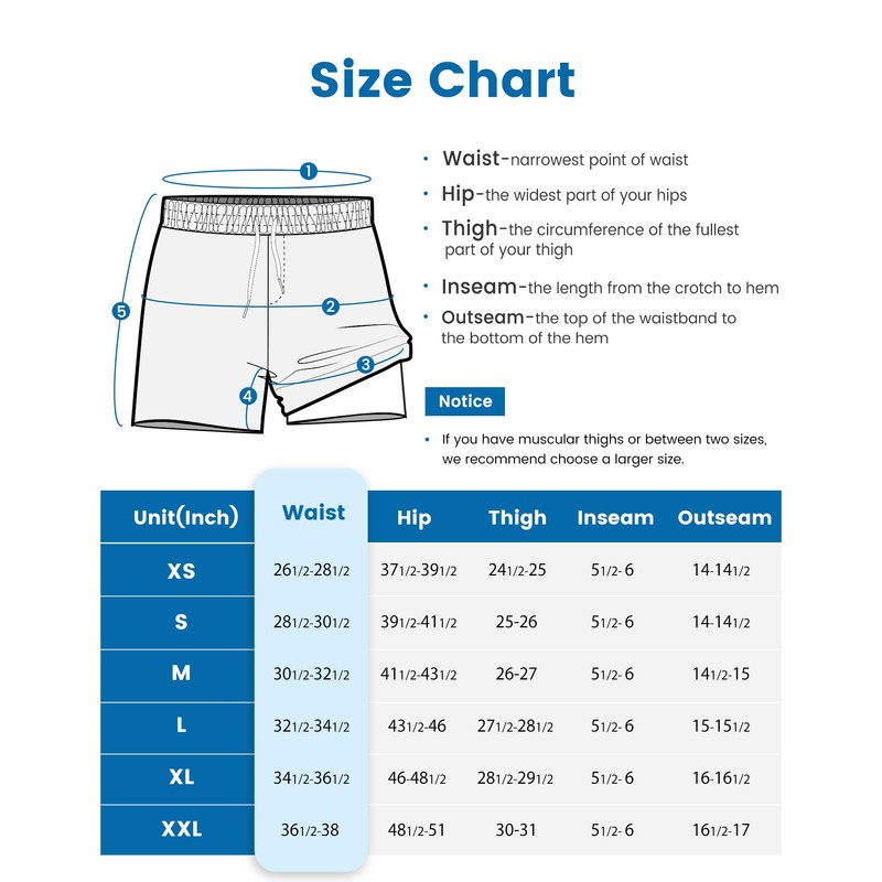 - Stretch & Quick Dry - Outer Shorts: 90% Polyester & 10% Spandex (Compression liner: 88% polyester and 12% spandex). The stretchy fabric is soft and lets you move your legs freely. 5 inch inseam above-the-knee fit shows off just the right amount of thigh.