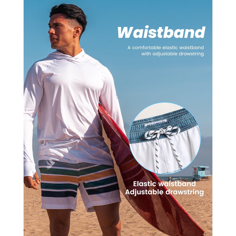 MaaMgic Swimming Trunks for Men Boys Swimming Shorts for Men Quick-Drying Surfing Beach Shorts Surf Shorts with Mesh Lining Reusable, White Blue Striped