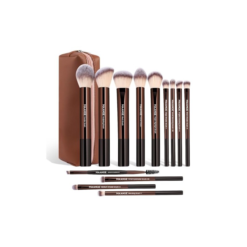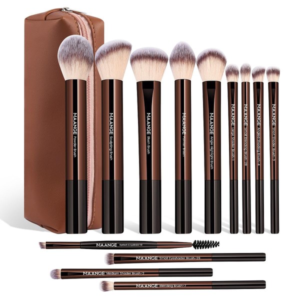 MAANGE 13 PCS Makeup Brushes Professional Travel Makeup Brush Set with Case (Coffee)