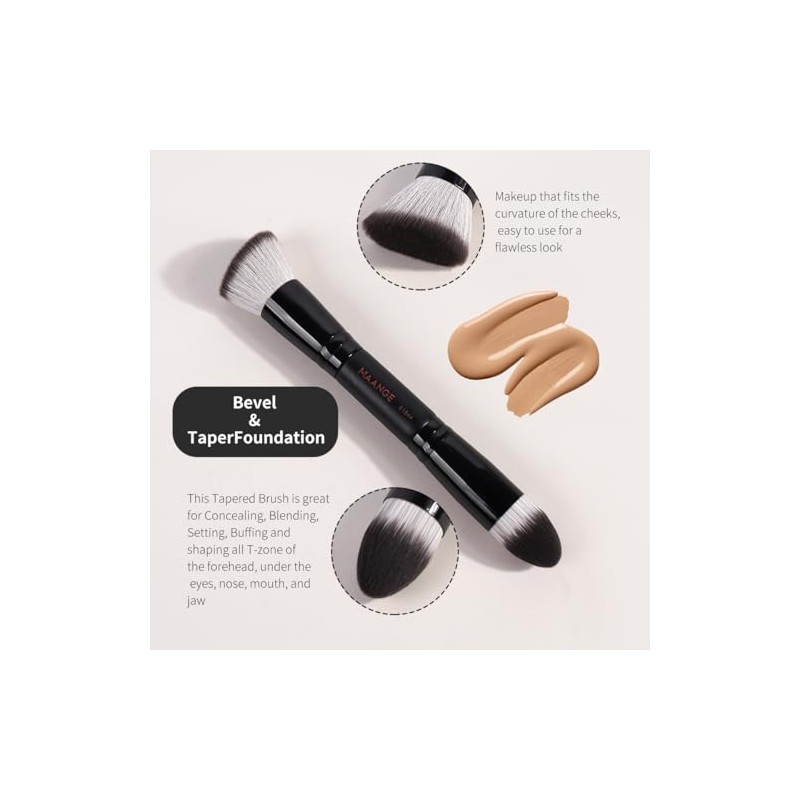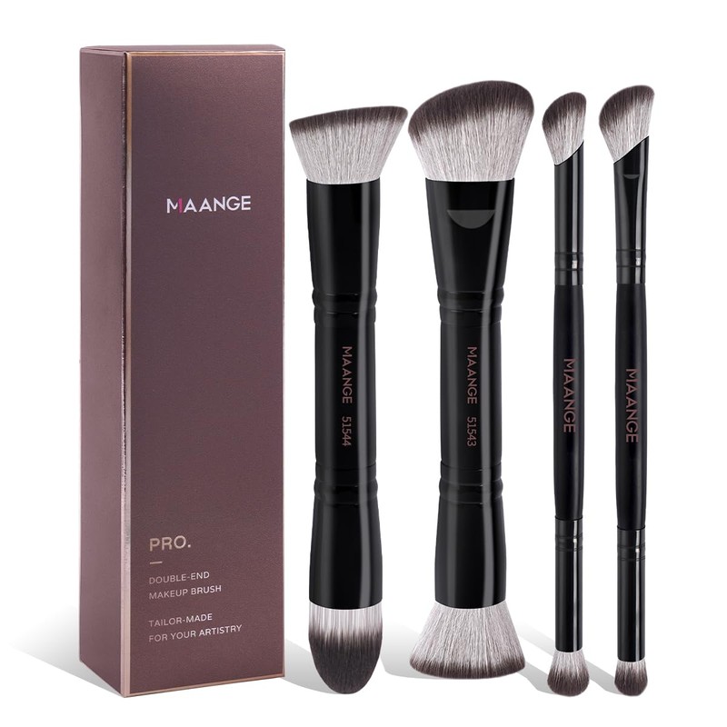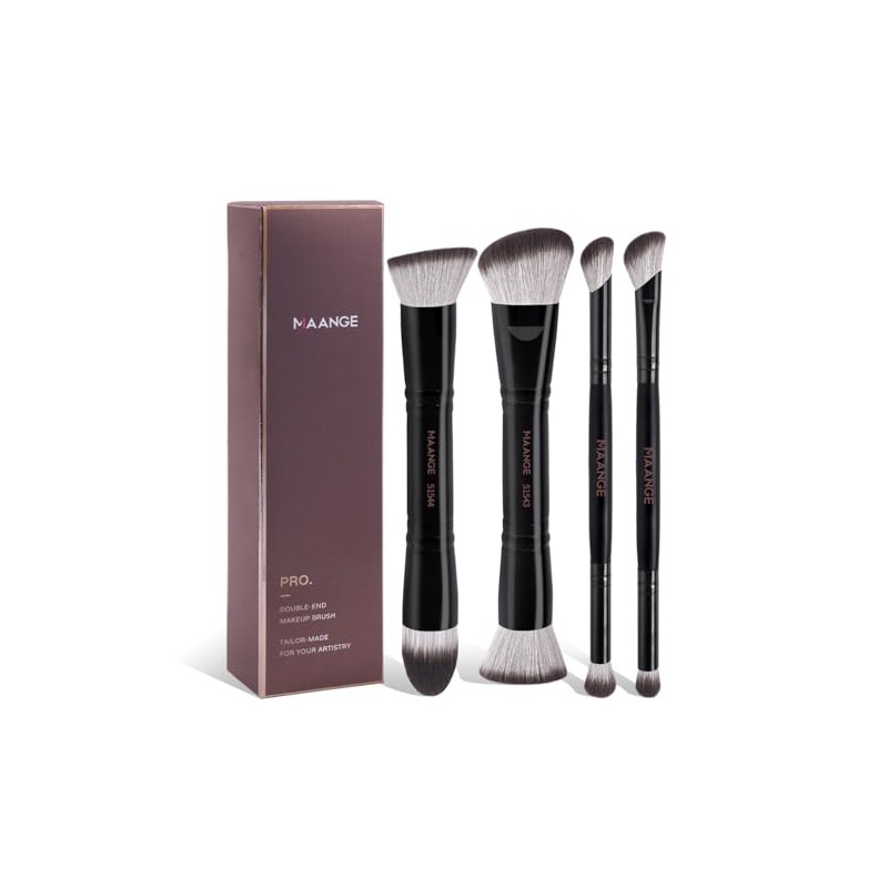 MAANGE Brochas Maquillaje, 4 Brochas de Maquillaje Premium de Doble Punta (PlanaAcodadaRedonda AcodadaCnica) para Pulir Lquidos, Cremas, Polvos,...