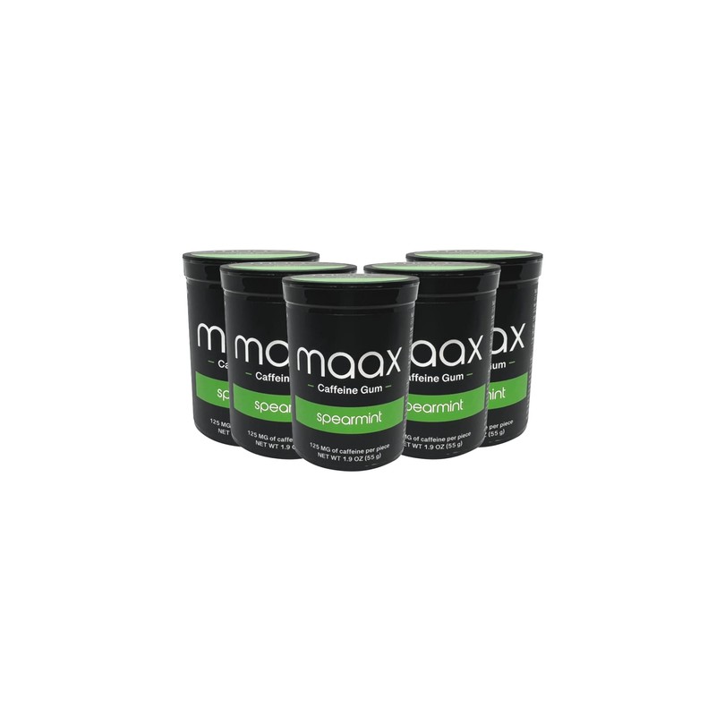 - 5 bottles per box – Yes, that’s right, with 5 bottles per box you are getting 125 pieces of maax caffeine gum. Incredible value!