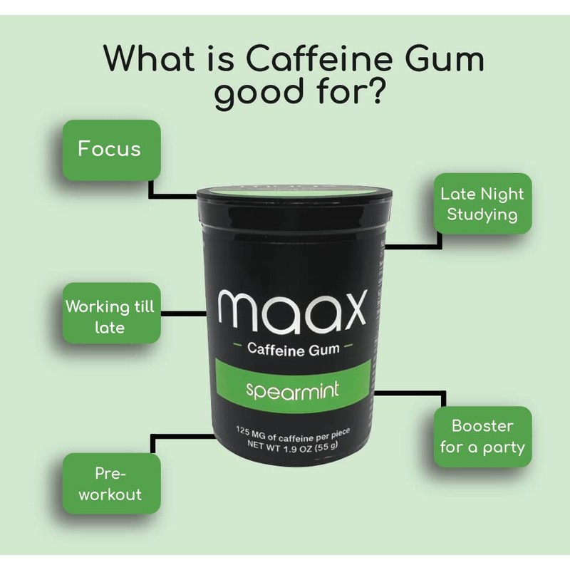 - GREAT BREATH – Are you avoiding coffee because of an upcoming meeting or event due to the bad breath it causes? Or are you watching the cleanliness and whiteness of your teeth? Well, Maax Caffeinated Gum is the perfect solution for you then.