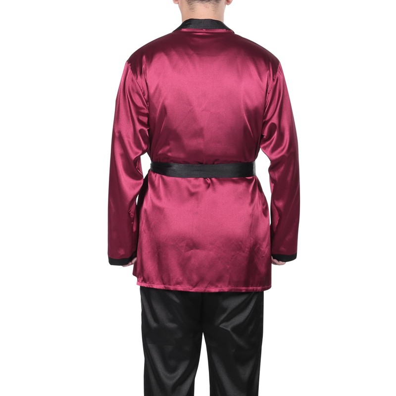 Maazusa Men Red Silk Robe jacket and Black Pants, Hugh Hefner Captain Costume Set Smoking jacket Bring Props(S)