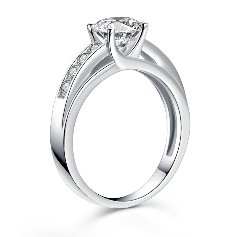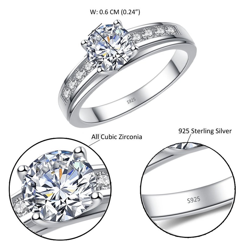 This is a beautiful top quality engagement ring. The feature of engagement ring is a 6.25mm (0.93ct) round cut stone in center with prong setting. It’s an AAA grade cubic zirconia stones with high clarity and refraction. The metal of ring is sterling silver and it's a hypo-allergenic. The total carat weight is 1.50 CTW diamond equivalent (approximate).