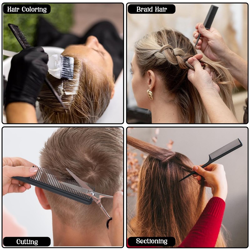 - Wide Application: These fine-toothed grooming combs with combs have a wide range of uses. Great for creating a variety of hairstyles such as parting, backcombing, backcombing and weaving hairstyles, coloring and barbering. Ideal for salons, barbers and makeup artists