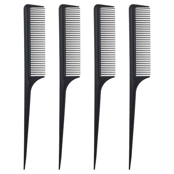 Mabor 4 Pcs Rat Tail Combs, Fine Tooth Comb Hair Styling for Root Teasing Sectioning, Parting, Styling Hair for Women (Black)
