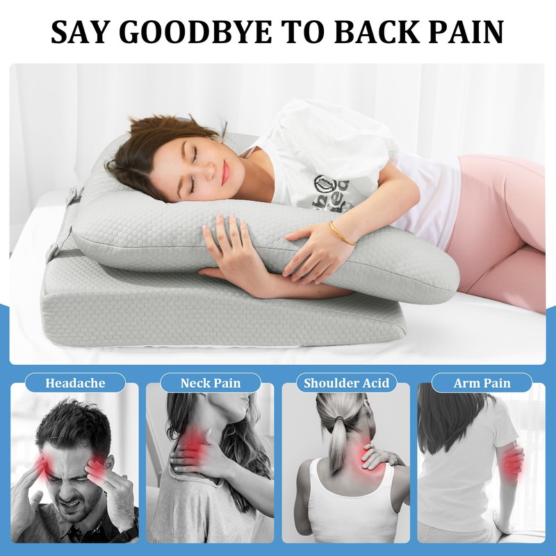 - 【PREMIUM MATERIALS】Our side sleeping pillow consists of two parts - a U-shaped pillow filled with high-quality soft PP cotton for improved comfort. The wedge-shaped pillow is filled with thick foam for added support. Breathable fabric is more skin-friendly and soft. This unique combination provides the most stable support and superior comfort, ensuring correct sleeping position whether you sleep on your left side, right side, stomach or back.