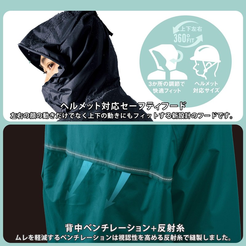 - Features: Versatile for everyday use. Comfortable standard rain suit. Easy to adjust the hood and foot. Adjustable cord on hood for a snug fit around head and neck and adjustable tape for a clean view. You can also roll the hood and use the dedicated tape to create a standing collar. In addition, the back of the seams is treated with a water-repellent tape to prevent water from entering the suit. The back ventilation helps to release stuffiness and improve breathability, and the mesh lining reduces stickiness. In addition, the outer fabric uses environmentally friendly water repellent material (non-fluorine water repellent). It can be used in a variety of situations, such as commuting to work or school, and outdoors