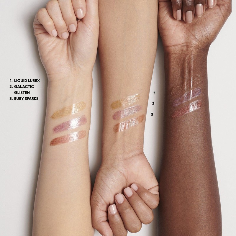 - A limited-edition lip gloss that can create a glass-like finish or a subtle sheen in three holiday-exclusive pearlescent shades.