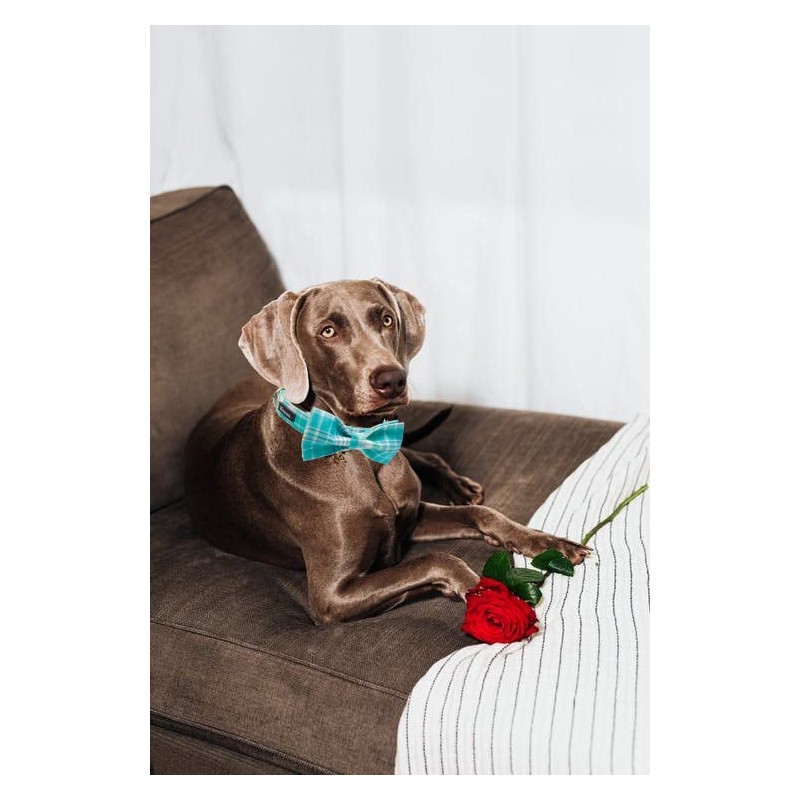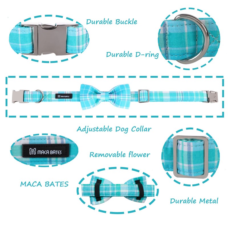 Maca Bates Plaid Blue Dog Collar with Checkered Bow Bowtie for Grid Dogs Bows Tie Adjustable Breakaway Collars Birthday Gift Colar for Small Medium Large XL Girl Boy Male Female Puppy Pets