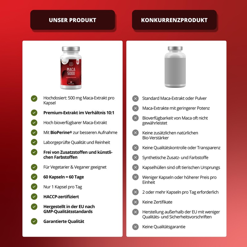 - Maca with increased bioavailability: we use high-quality maca, which already has a high bioavailability. However, to increase the intake, we have added black pepper extract (BioPerine), which increases the bioavailability of maca by 30%.