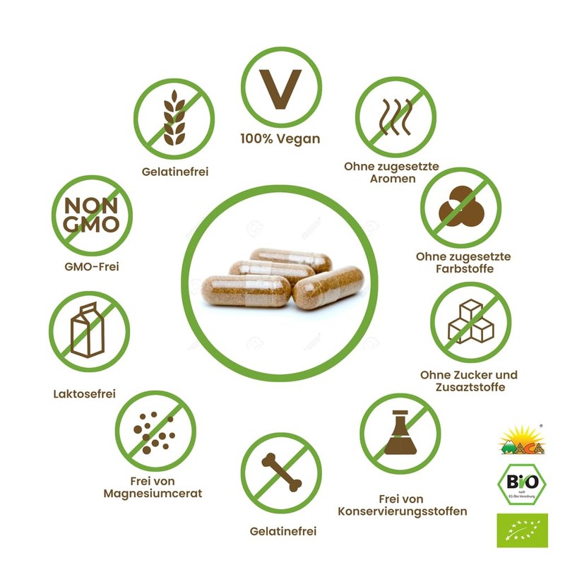 - Import and manufacture in one hand, we import the maca root in organic quality and have it encapsulated in vegetarian capsules and packed in Germany. This food the Incas have