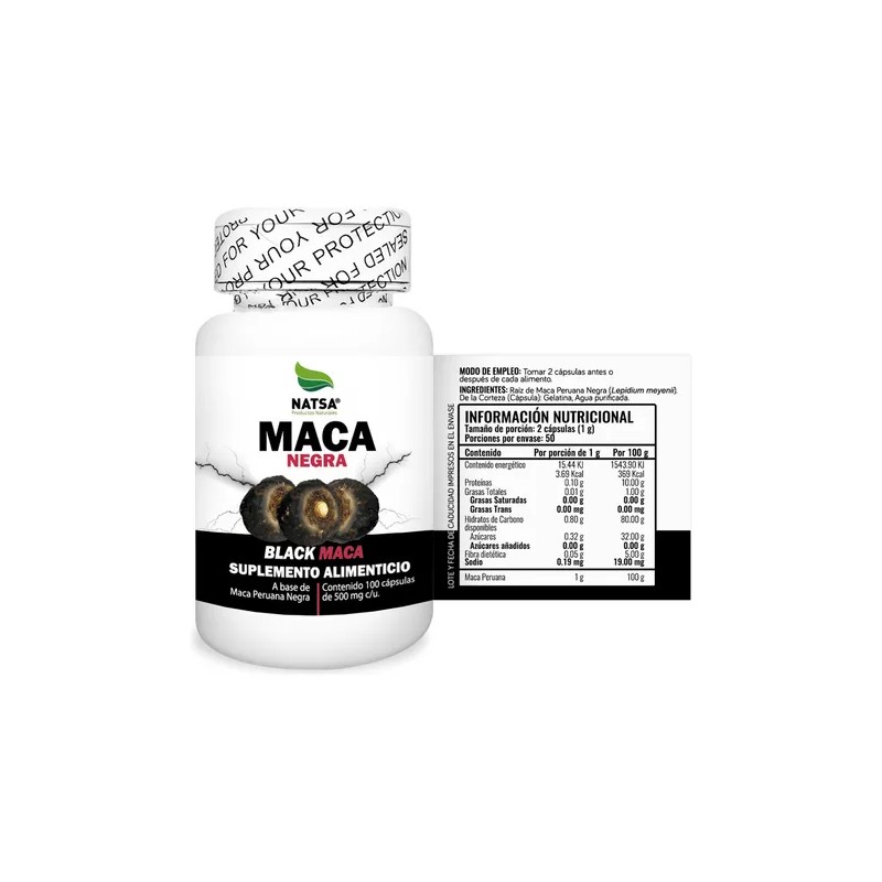 Maca Negra, Black Maca 100 Cápsulas, Calidad Premium Sabor Natural
