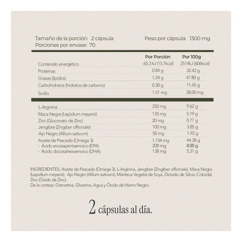 MACA NEGRA es el aliado ideal para quienes buscan un complemento que les ayude a mantener una vida activa y plena. Con 140 cápsulas softgels de fácil absorción, estás listo para potenciar tu rutina diaria y disfrutar de sus beneficios en cada toma.