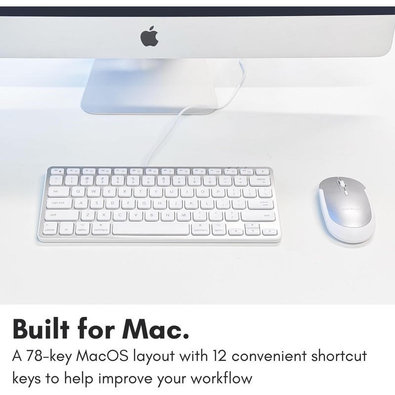 Macally Small Keyboard for Mac with USB Hub (3 Ports) - Wired 2 in 1 USB C + A Plug - Save Space with an Apple Compatible Keyboard (78-Key Layout) - Silver