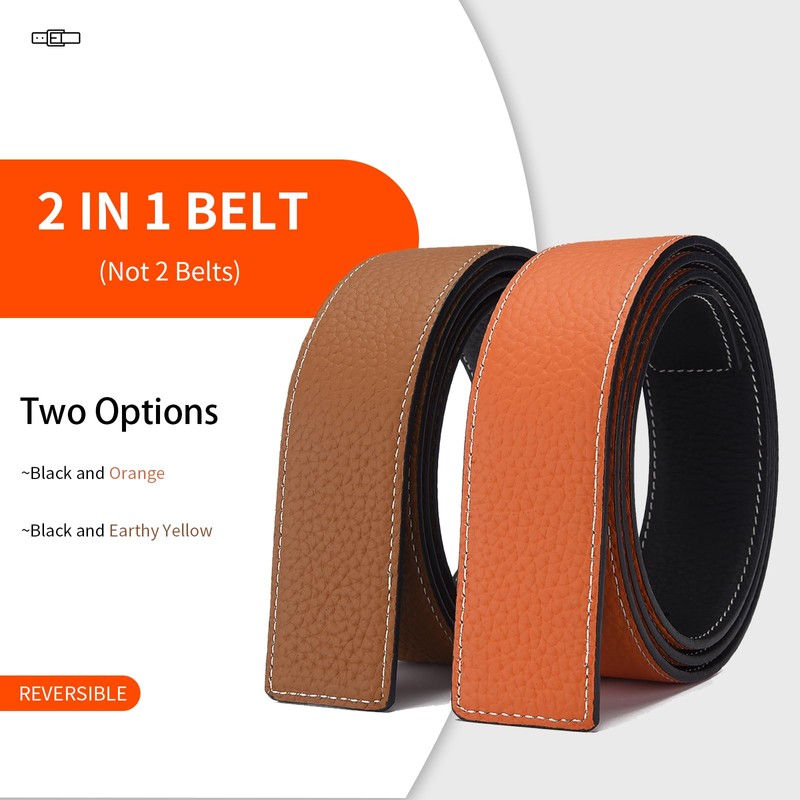 MACBORO Men's Reversible Leather Belt Without Buckle Replacement Belt Strap 1.5"/38mm Wide