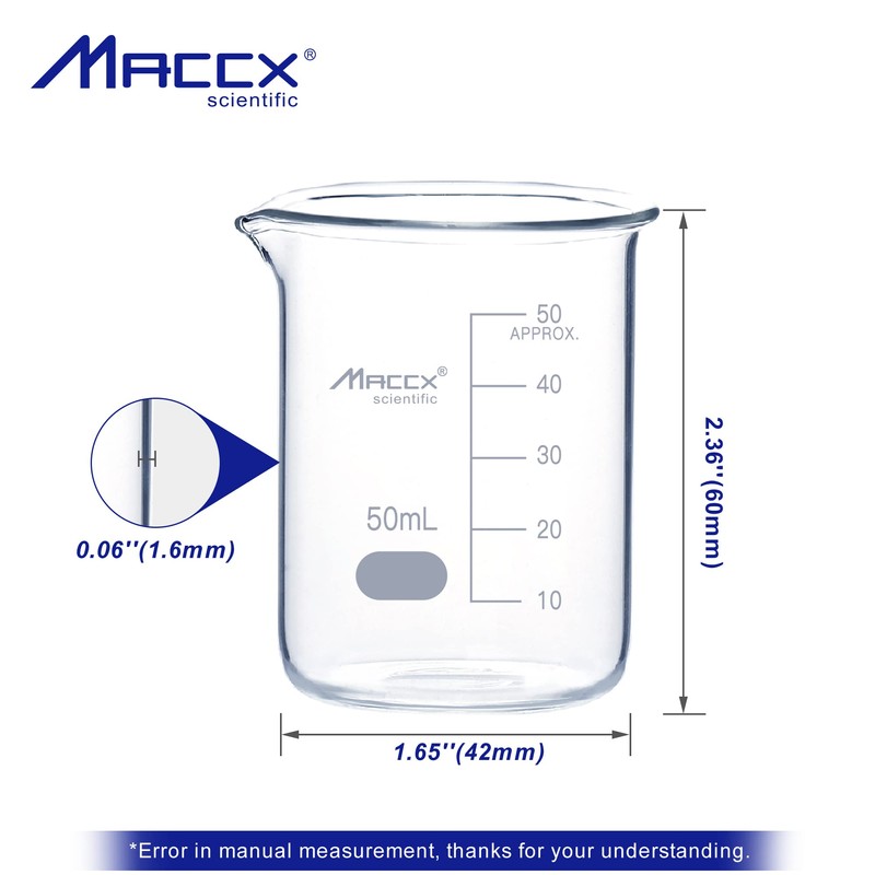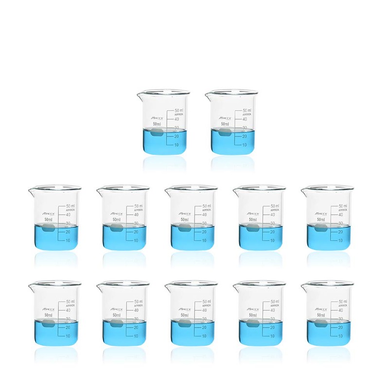 - 12pcs of 1.7oz(50ml) glass beakers packed in box.