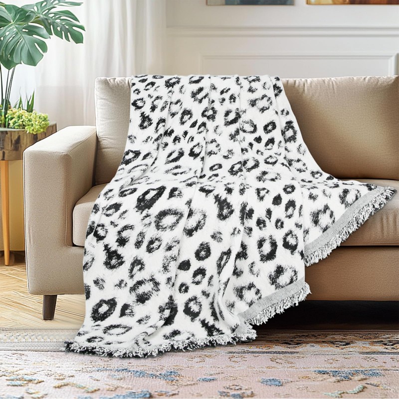 - 【Unique and Colorful Design】 -- Woven blanket with black and white of colors to form exquisite patterns of snow leopard pattern. Each detail comes together, evoking a sense of whimsy and free-spirited charm typical of the Bohemian aesthetic. The vintage throw blanket with fringe design adds a playful and stylish touch. The cascading tassels create a sense of movement and texture, enhancing the overall personality of the blanket. Making it a unique and eye-catching addition to any space.