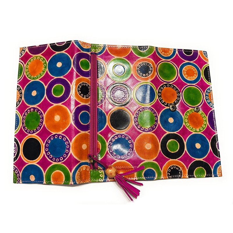 Macha Cheque Book Wallet Card Holder Leather Women Ethnic Hippie Indian Boho Style, Fuchsia 04, Retro