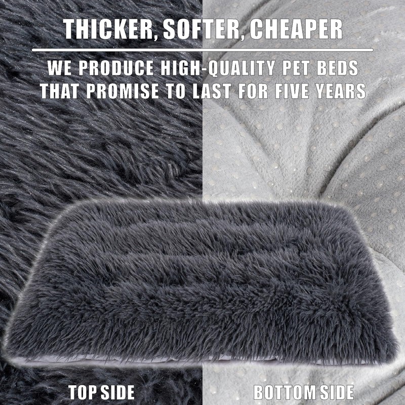 Machine Washable Dog Bed, Deluxe Plush Dog Crate Pad and Cat Bed, Anti-Slip Bottom Kennel Pad Mat, Fuzzy Pet Beds for Large, Medium, Small Dogs Breeds (Dark Grey, 24.0"L x 18.0"W x 3.0"Th x 2 PACK)