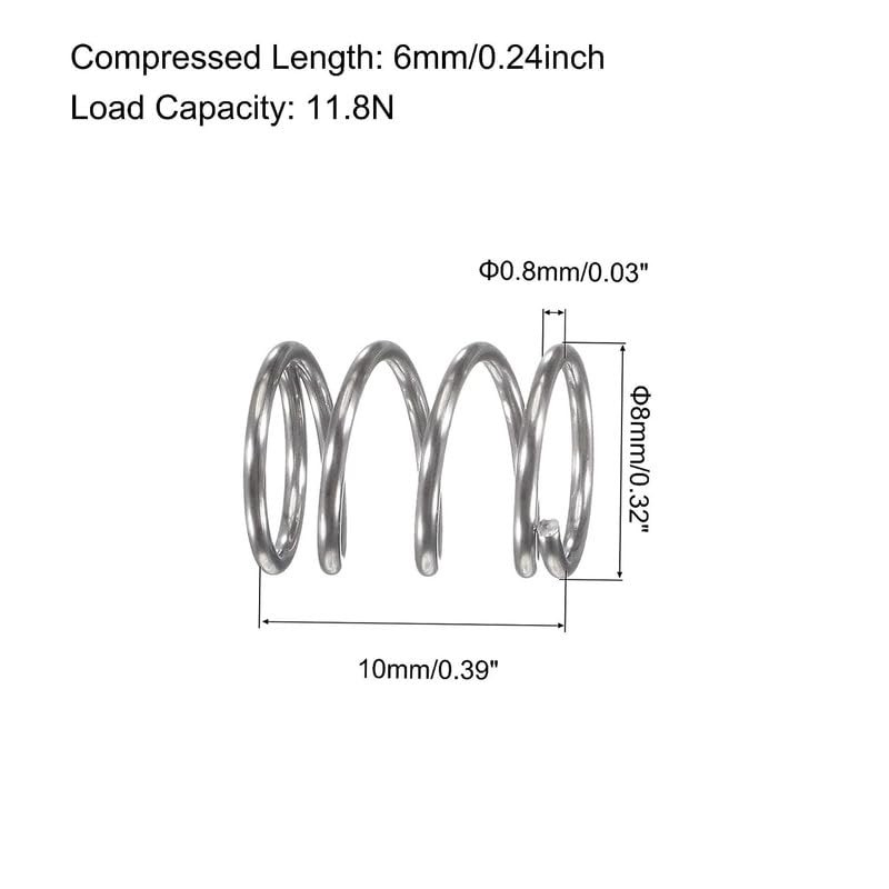 • Product: 8mm/0.31inch OD, 0.8mm/0.03inch Wire Diameter, 10mm/0.39inch Total Height.