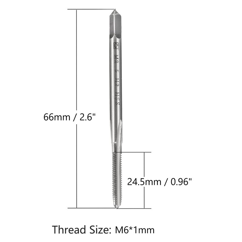 MACHSWON Metric Machine Tap for Watches Low Hardness Wood and Soft Metal Hole Processing H2 HSS 3 Straight Flutes Tap DIY Tool M6x1.0mm 2pcs