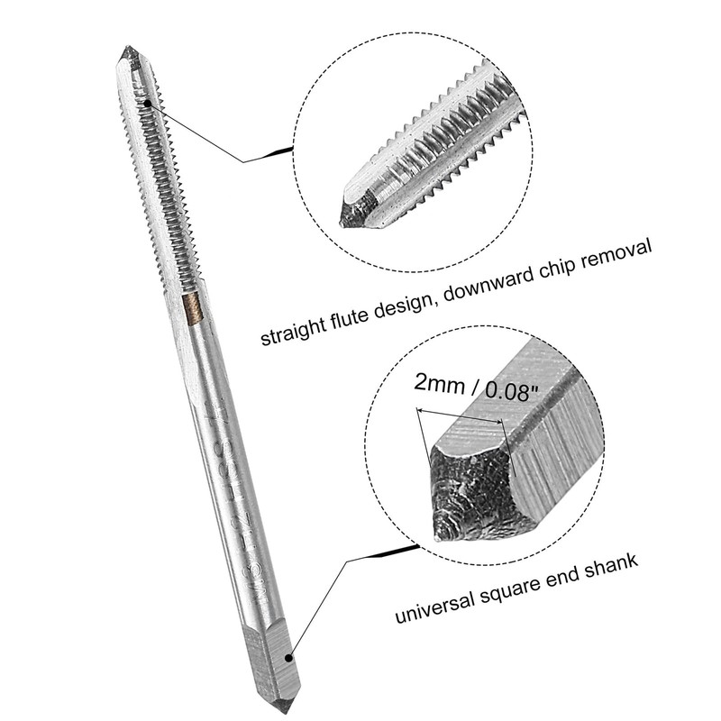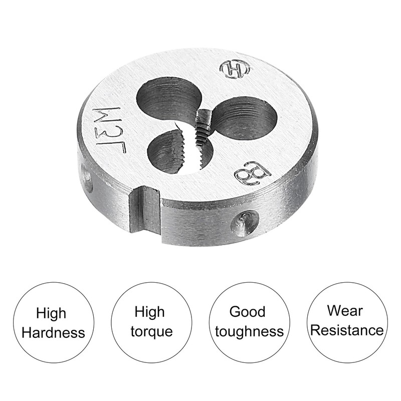 • High speed steel machine screw tap provides combination of hardness and toughness for wear resistance. Alloy tool steel round die features good abrasion resistance. Tap and die set are sharp and durable, and with clear threads to meet the processing requirements.