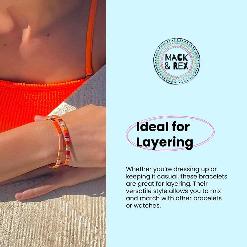 - Miyuki Tila Beads - Made with authentic Miyuki tila beads, each bracelet showcases a stunning array of vibrant colors and patterns. The precision-cut, square beads provide a sleek, polished look.