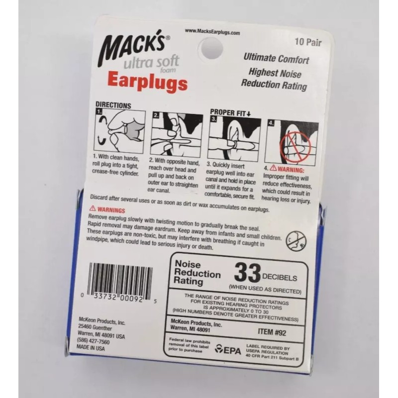 Lot of 2 Mack's Ultra Soft Foam Earplugs 33dB High NRR Ultimate Comfort 10/Pack