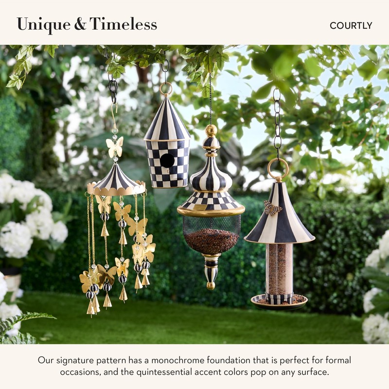 MACKENZIE-CHILDS Bird Feeder, Decorative Metal Bird Feeder for Outdoors, Courtly Stripe