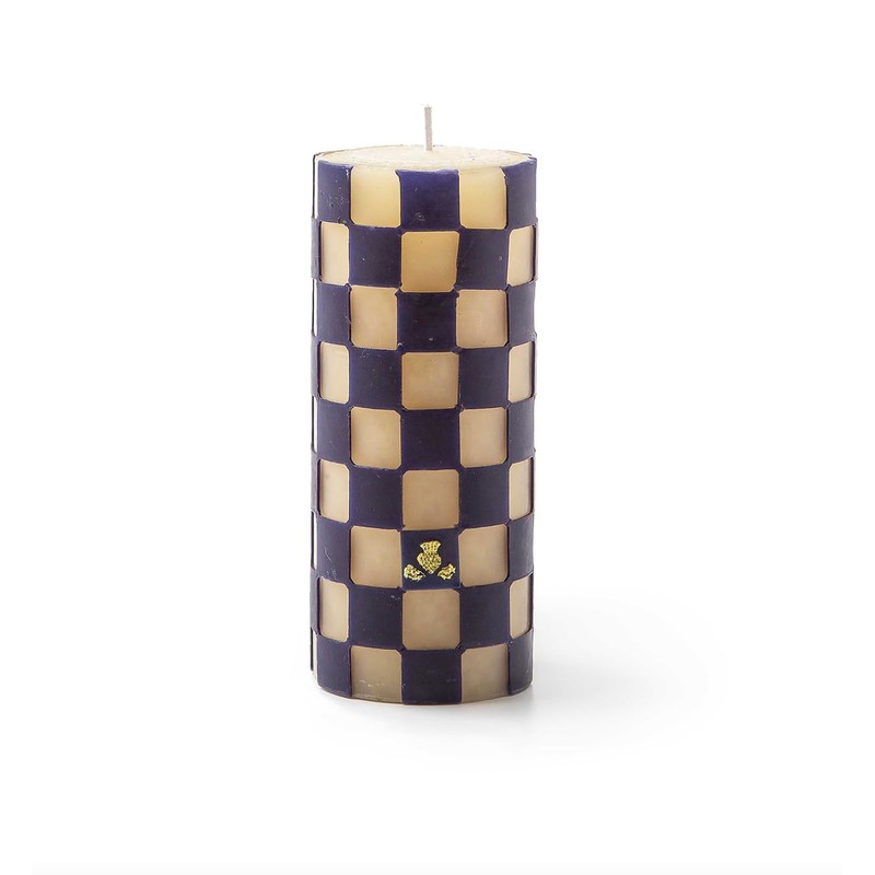 Mackenzie-Childs Check 6″ Navy Pillar Candle