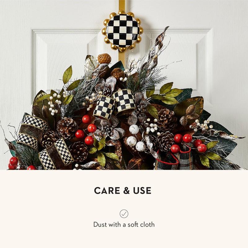 MACKENZIE-CHILDS Wreath Hanger, Door Hanger for Christmas Wreaths or Seasonal Decor, Black-and-White Courtly Check