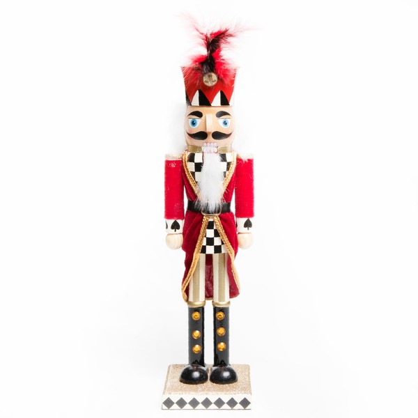 - NUTCRACKER CHRISTMAS DECORATION: Our wooden Castle Guard Nutcracker is a regal addition to your indoor Christmas decorations. This toy soldier is decorated with our black-and-white Courtly Check pattern and wears a red coat and a feathered hat.