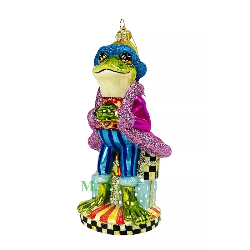 MacKenzie-Childs Granny Kitsch Frog Christmas Glass Ornament