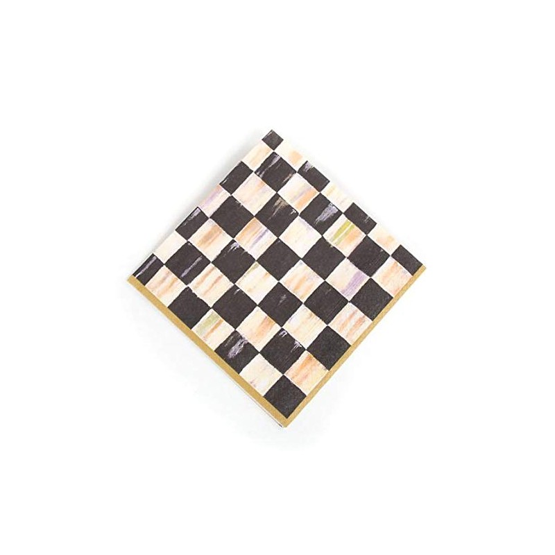 - Añade un toque de estilo MacKenzie-Childs incluso a las reuniones más simples con las servilletas de papel Courtly Check